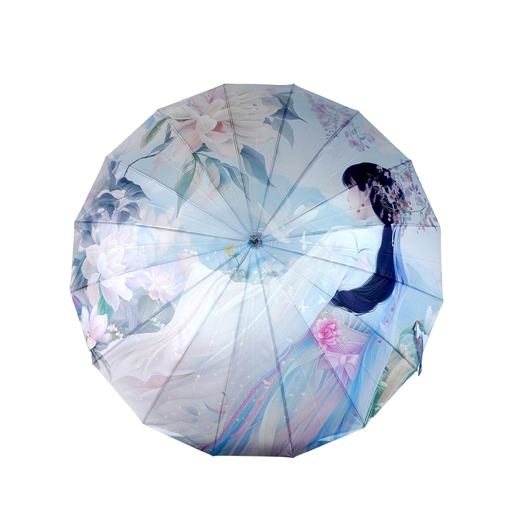 زهور بالألوان المائية، مظلة على الطراز الصيني، مظلة مطرية لجميع المواسم