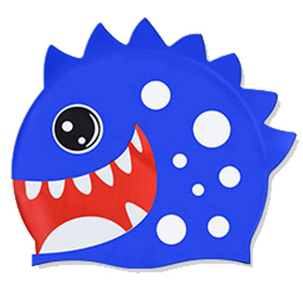 3d White Polka Cobalt Blue , Silicone Kids Swim Cap, 5 years - 15 years