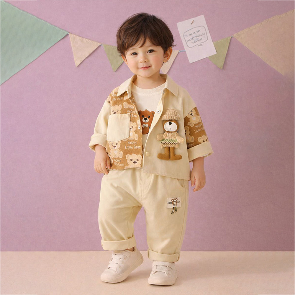 3pcs set, Happy Little Bear Jacket, T-shirt & Pants set for Kids