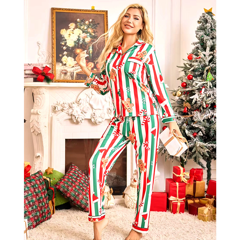 Red & Green Gingerman Christmas Printed Nightsuit Set for Adults, Unisex
