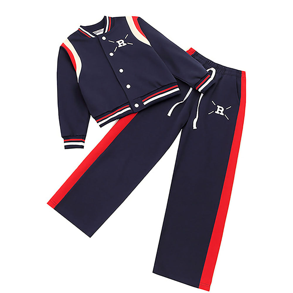 2Pcs Navy With Red And Cream Varsity Style Jacket With Matching Pants For Kids & Tweens