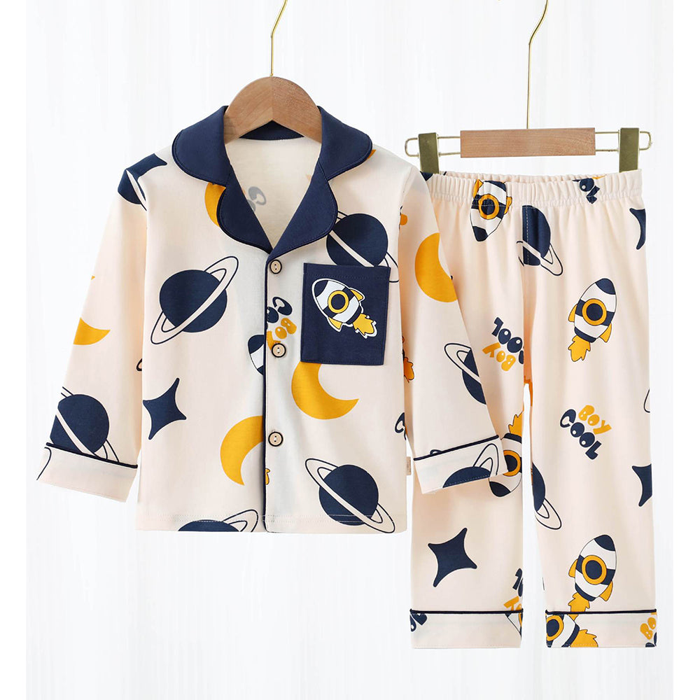 Planets Cream and Navy soft Cotton Kids Nightsuit