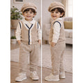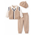2 Pcs Beige Vest-Style Winter Cardigan & Pants with Beret Cap for infants
