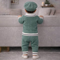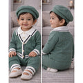 2 Pcs Green vest style Winter Knit Cardigan & Pants with Beret Cap for Infants