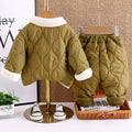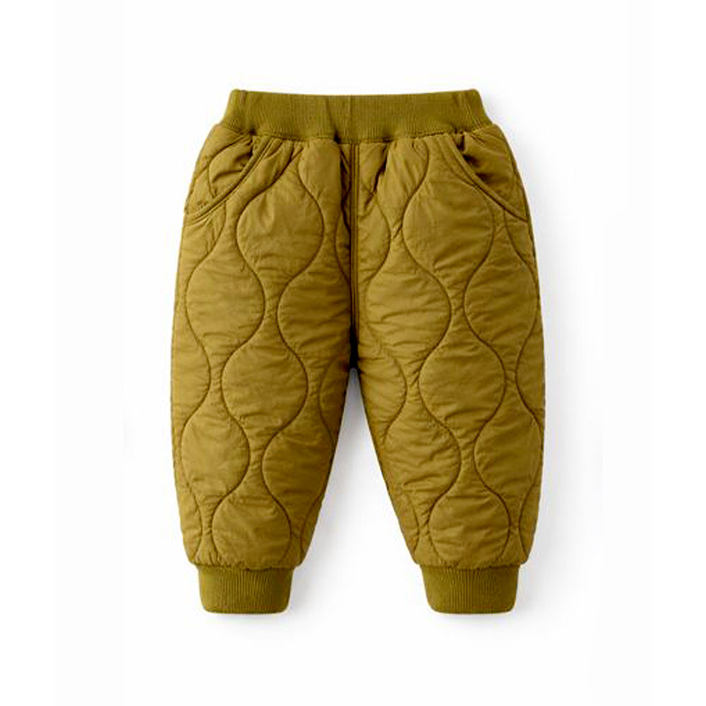 2 Pcs Olive Quilted Puffer Winter Jacket with Pants Co-ords set for Kids