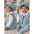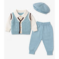 2 Pcs Teal Vest-Style Winter Cardigan & Pants with Beret-Style Cap for Infants