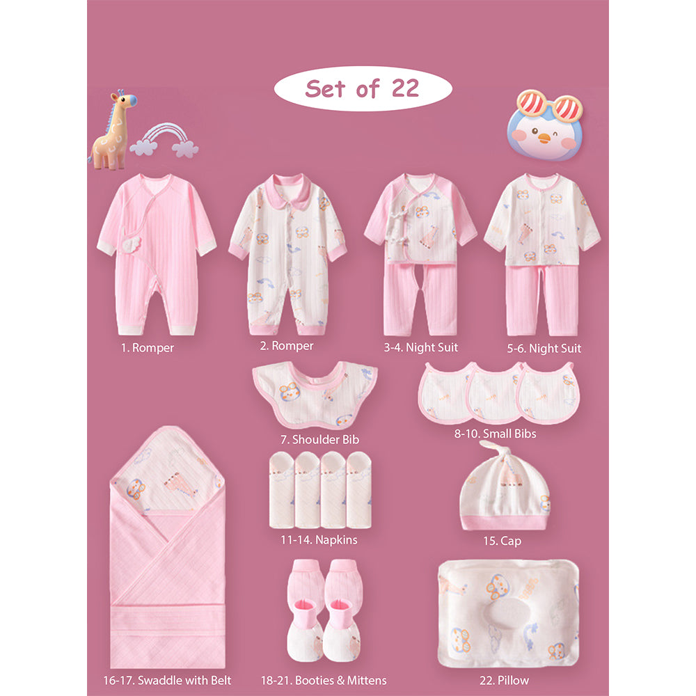 22pcs Pink Penguin Newborn Baby Girl/ Boy Gift Box , all season wear Gift Hamper, (0 - 12 months)