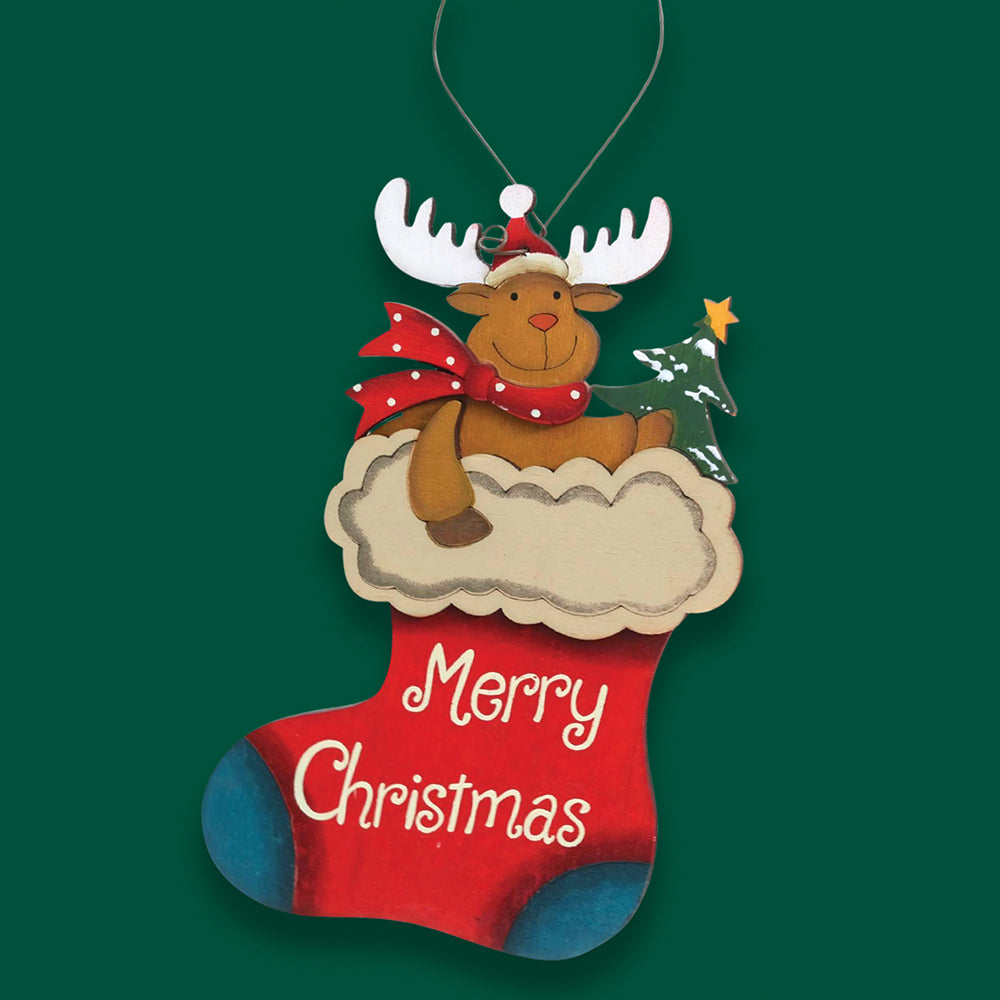 2pcs set of Wooden Stockings with Santa & Reindeer Christmas tree Ornaments