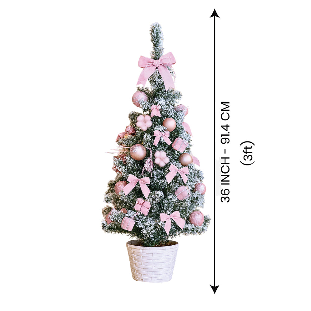 3 feet pastel Pink Swirl snowy Bushy Christmas Tree filled with balls and ornament Fillers