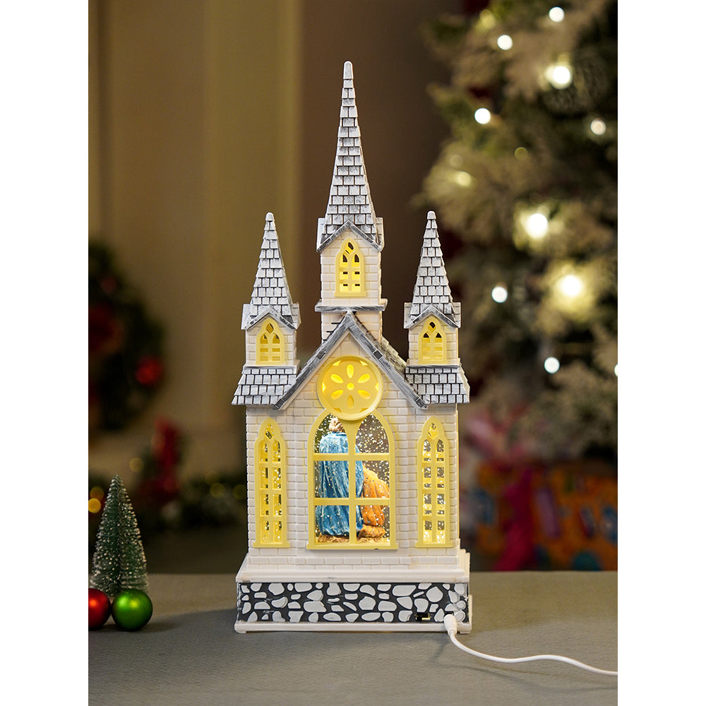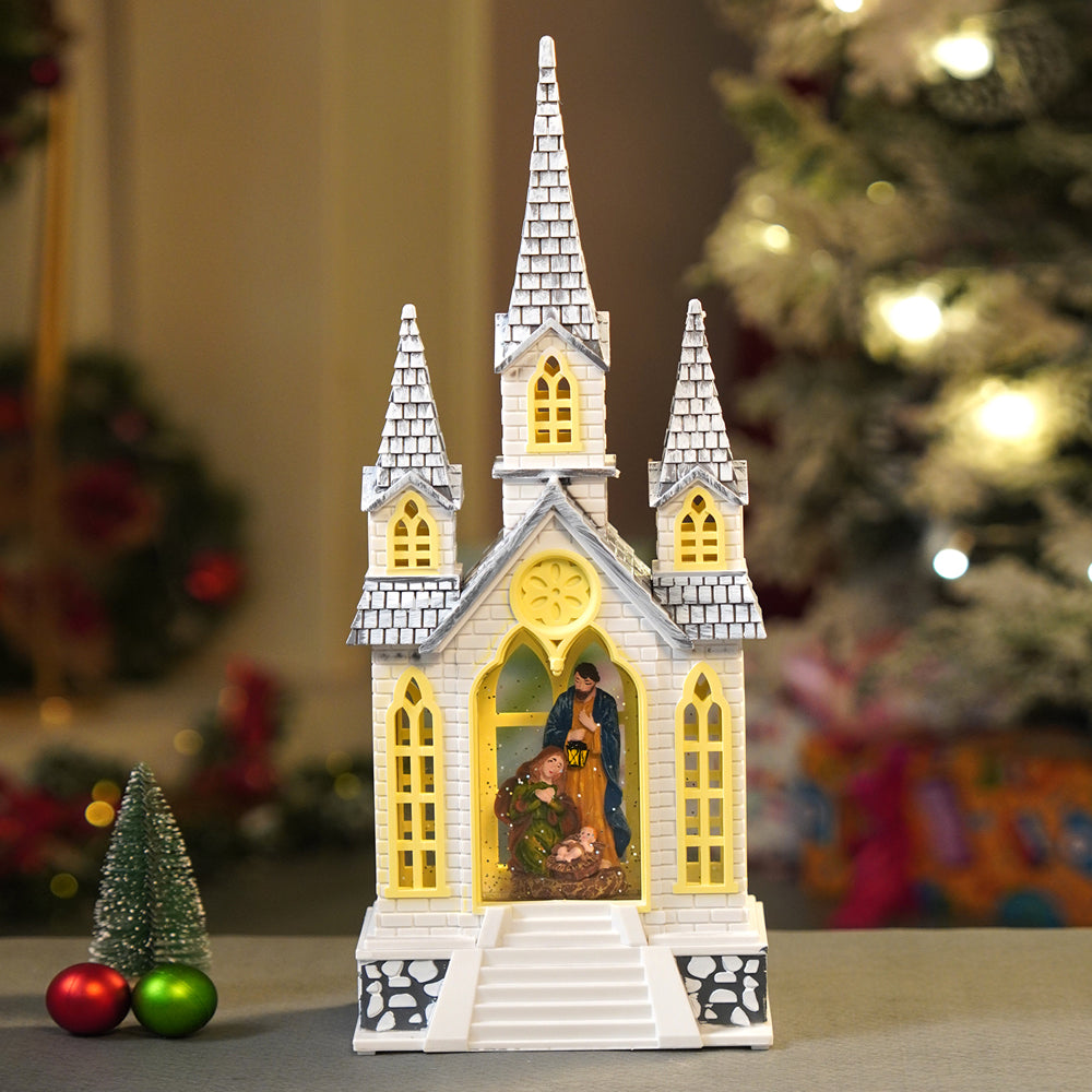 3 Tower Church with Holy Family Decor with Musical Glitter Water, Rotation & Light, Christmas Home Décor