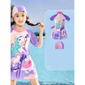 فستان سباحة للأطفال على شكل ذيل حورية البحر أرجواني ثلاثي الأبعاد مع قبعة سباحة متطابقة مع عامل حماية من الأشعة فوق البنفسجية 50+