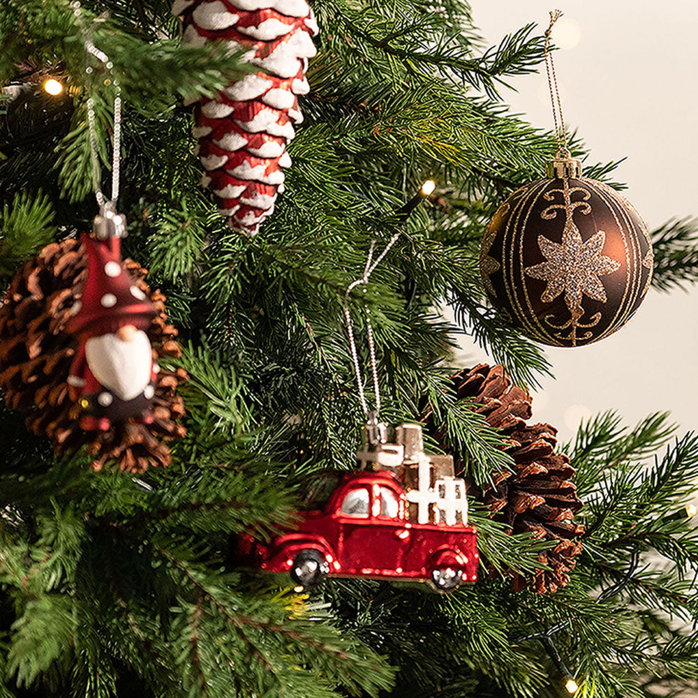 60 pcs Maroon, Brown & Gold Pinecone themed Christmas Balls tree hanging, Xmas Decoration set.