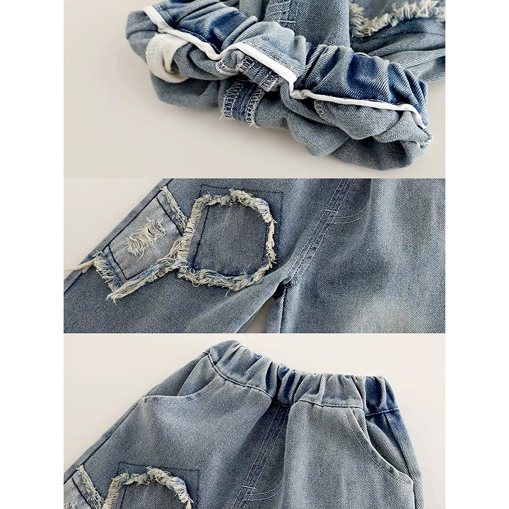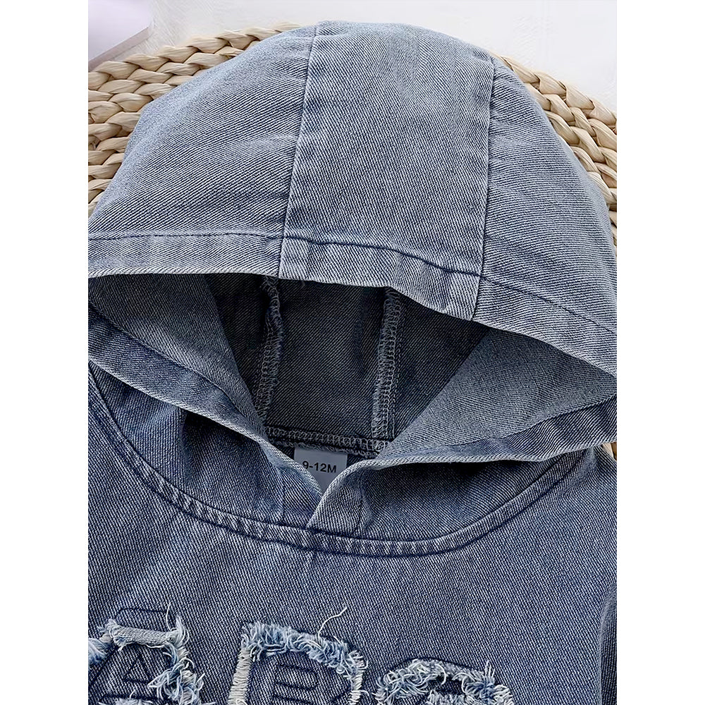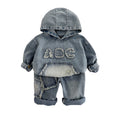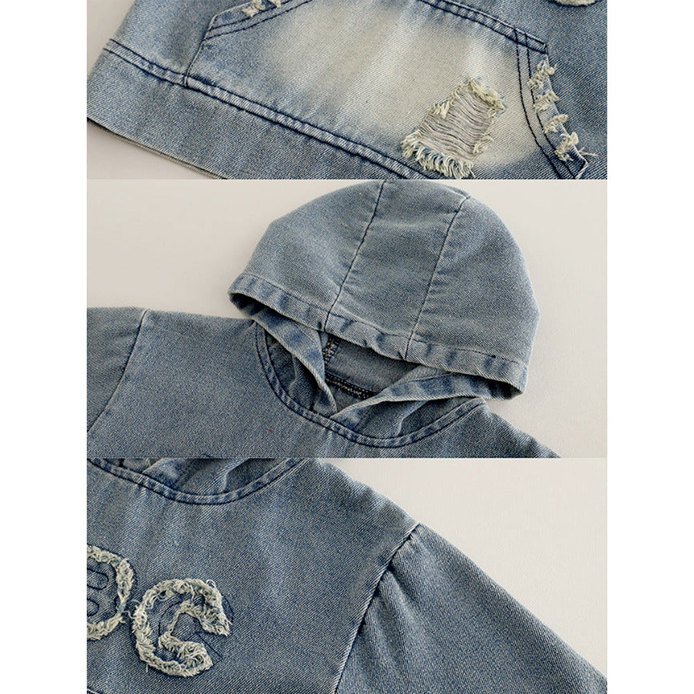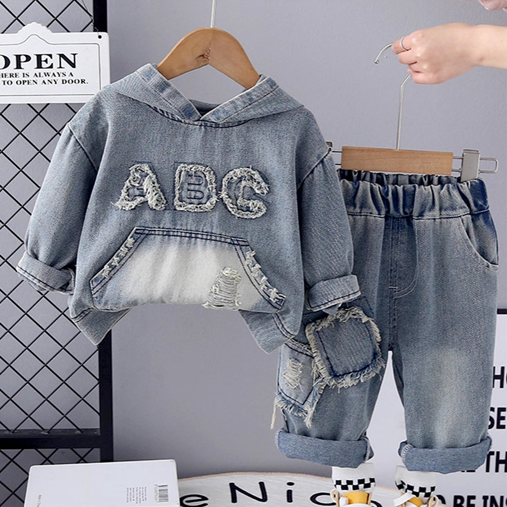 ABC Ripped Denim Hoodie with Pants for Kids