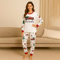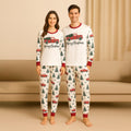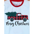 2. Festive Print: The top features a charming Christmas truck carrying a tree with a stylish “Merry Christmas” message. The sleeves and matching pants include prints of trucks, trees, wreaths, snowflakes, and candy canes, creating a cheerful and nostalgic holiday look.
