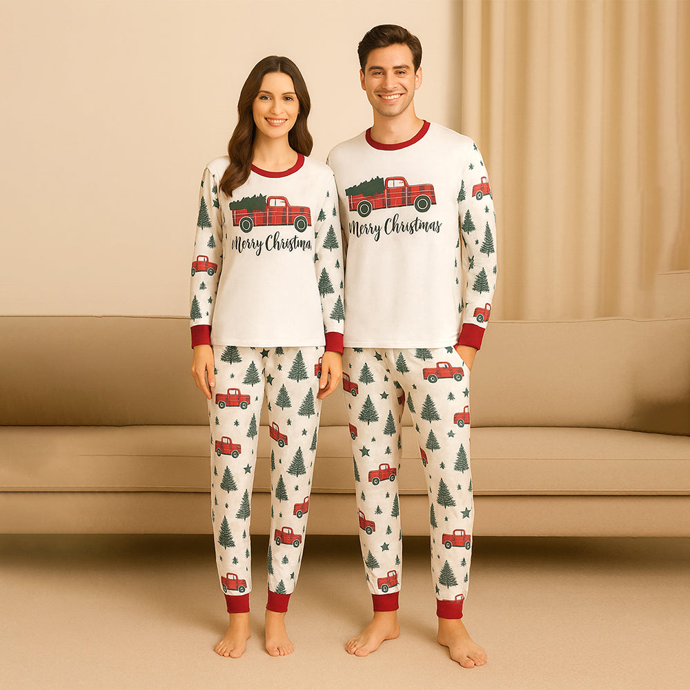 Adults Red Big Truck soft Cotton,Christmas Nightsuit, 1 Pcs - Top & Bottom Set