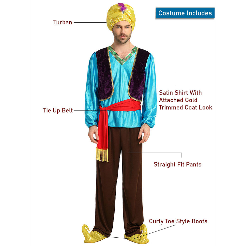 Aladdin Blue and Brown Adults Halloween Costume Fancy Dress Up