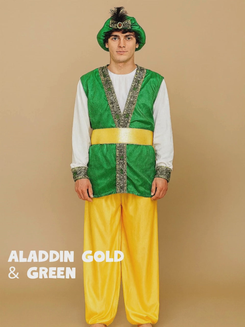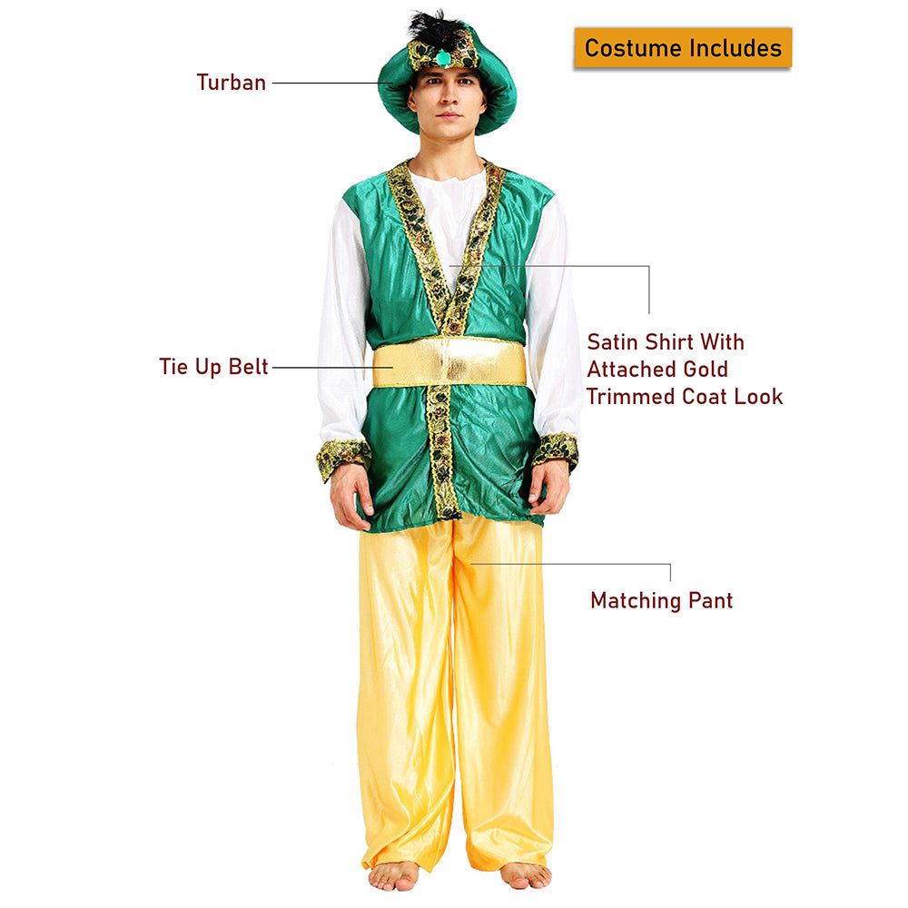 Aladdin Gold and Green Adults Halloween Costume Fancy Dress Up