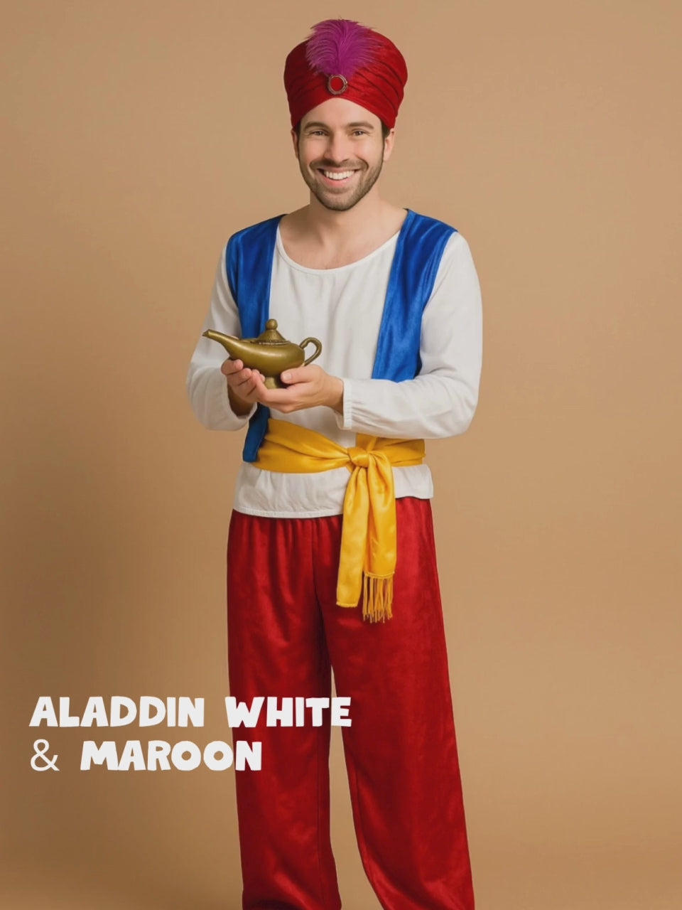 Aladdin White and Maroon Adults Halloween Costume Fancy Dress Up