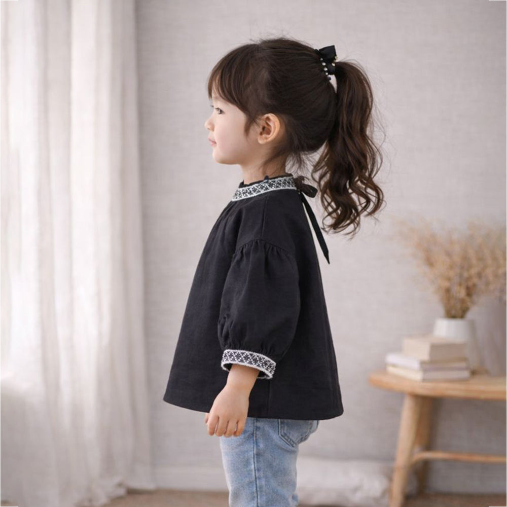 Blace Emroidered Neck Party Top for Girls
