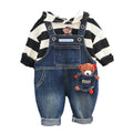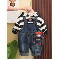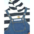 Black Stripes Teddy Bear Soft Toy Dungary Style 2 Pc Clothing Set For Toddlers And Kids