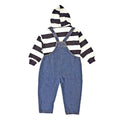 2.Cozy Striped Hoodie Shirt:Includes A Soft Breathable Striped Long-Sleeve Hoodie Shirt That Complements The Overalls Making It Perfect For Layering In Cooler Weather.