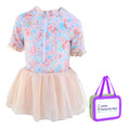 ملابس سباحة زرقاء كبيرة مزينة بنقشة زهور توتو للأطفال الصغار والأطفال