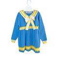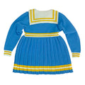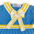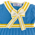 Blue & Mustard Big Bow & Stripes Sailor neck Winterwear Frock