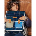 حقيبة ظهر مستطيلة بنقشة مربعات اسكتلندية زرقاء للأطفال، مقاس متوسط