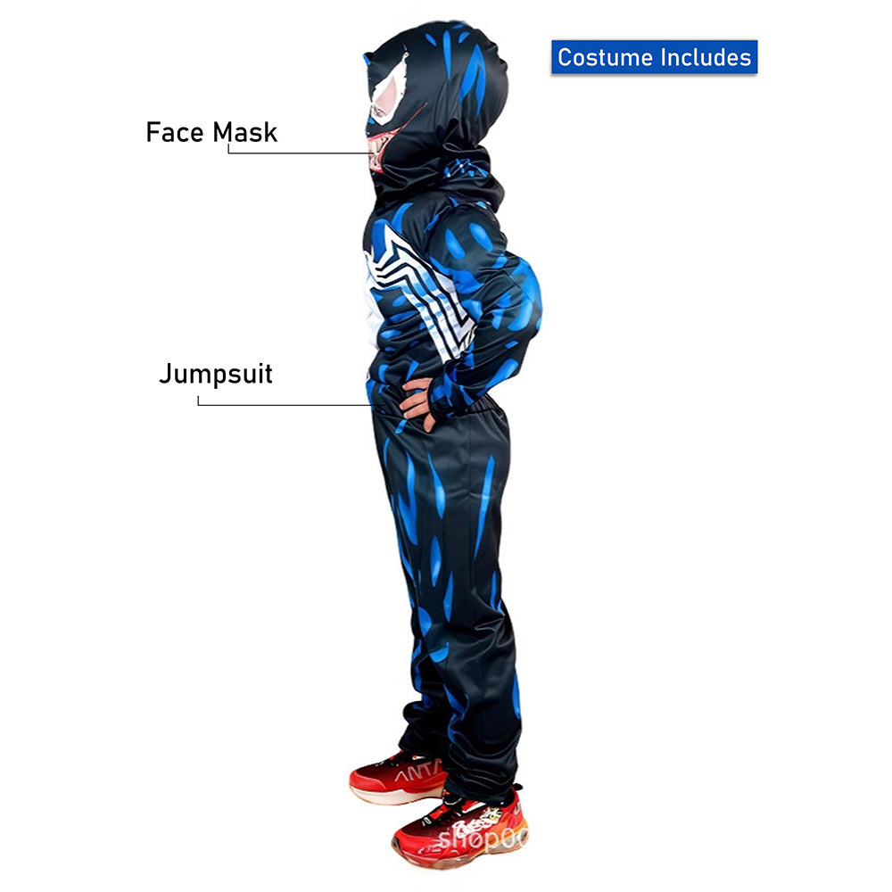 1. Design: This stunning Muscled Blue Spider Superhero themed halloween costume for kids is a good party costume dress up.The different look makes you stand out from the regular costmes available at the market. Suitable for most kids which will help them stand out well creating all the excitement and fun for any dress up party occasion.