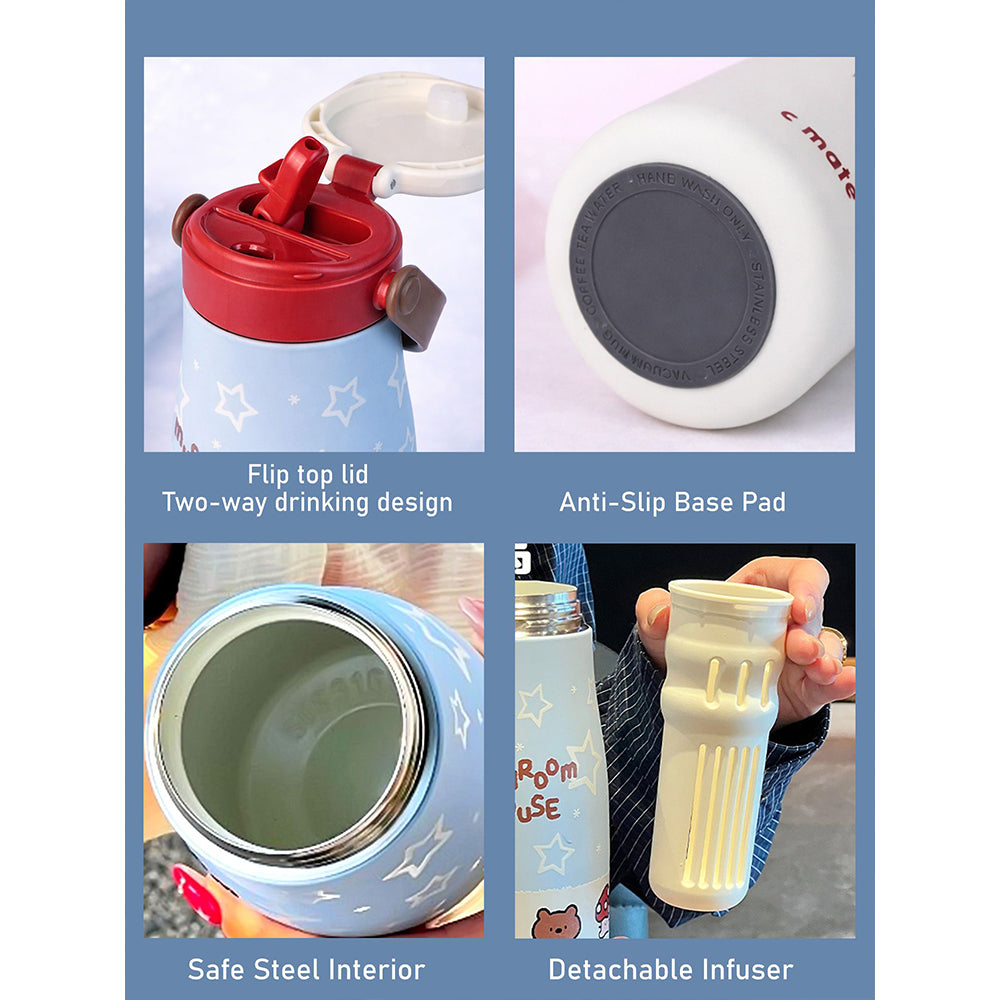 Blue Star, Moo series insulated thermos Bottle with detachable filter for Kids and Adults, 600ml