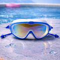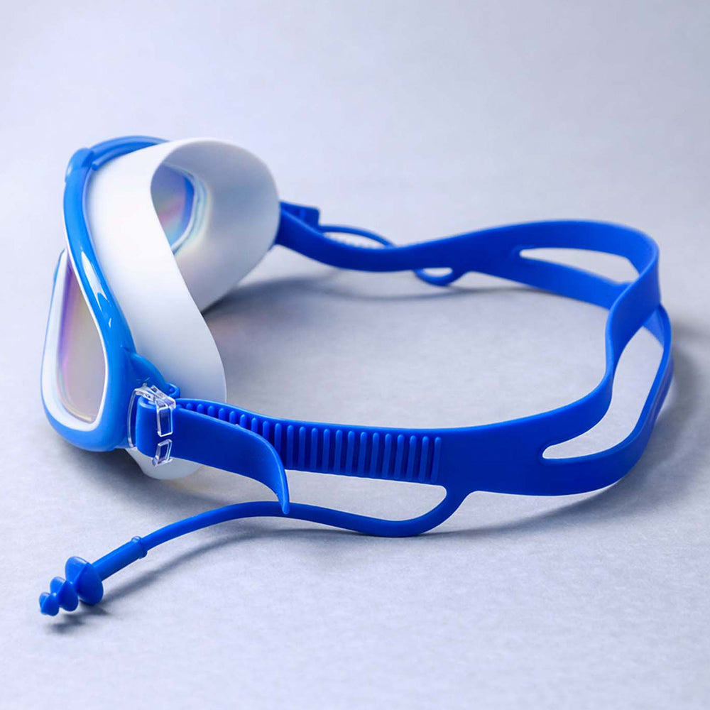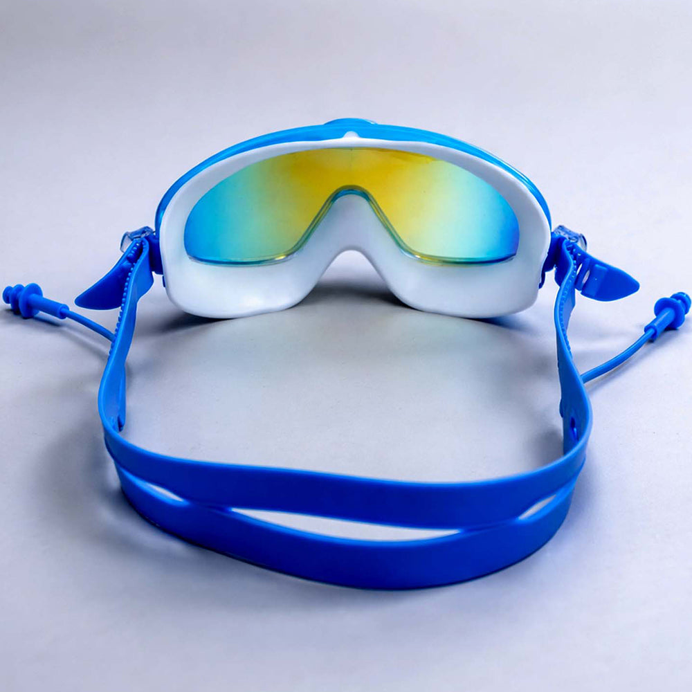 2. Design: Designed in a blue and white color combination with a stylish wide-lens look. The mirrored finish lens adds a sporty and modern appeal, making it stand out at the pool.