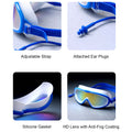 1. Protection & Anti Fog: This kids swimming goggle is crafted with high-definition PC lenses featuring an anti-fog coating for clear underwater vision. The lenses prevent water from entering, ensuring a safe and enjoyable swimming experience for kids.
