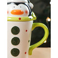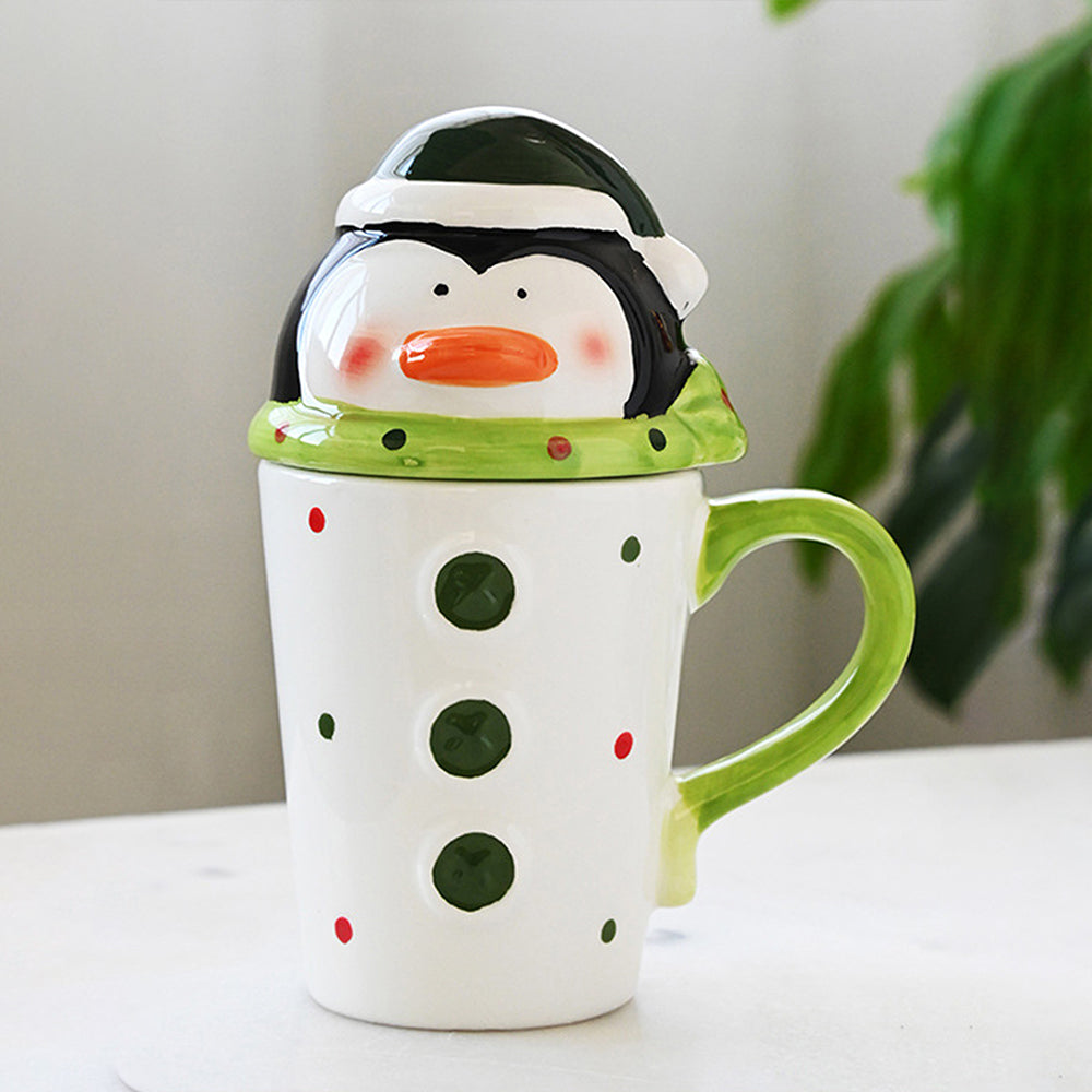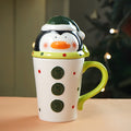 Buttoned Penguin Lid Ceramic Hot Chocolate and Coffee Christmas Mug