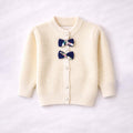 Cream & Blue Bow Knitted Warmer Cardigan, Winter Cardigan Sweater for Kids