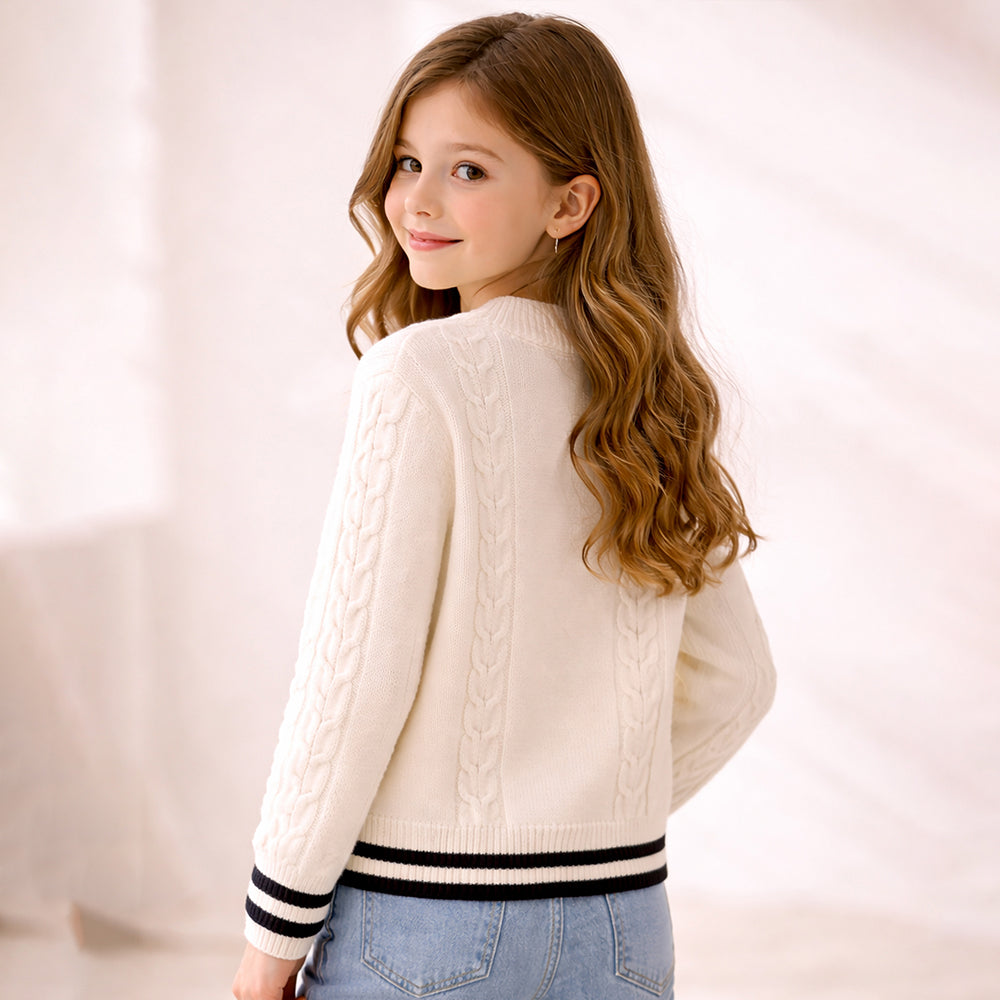 Cream Cable-Knit Teddy Cardigan, Winter Cardigan Sweater for Kids