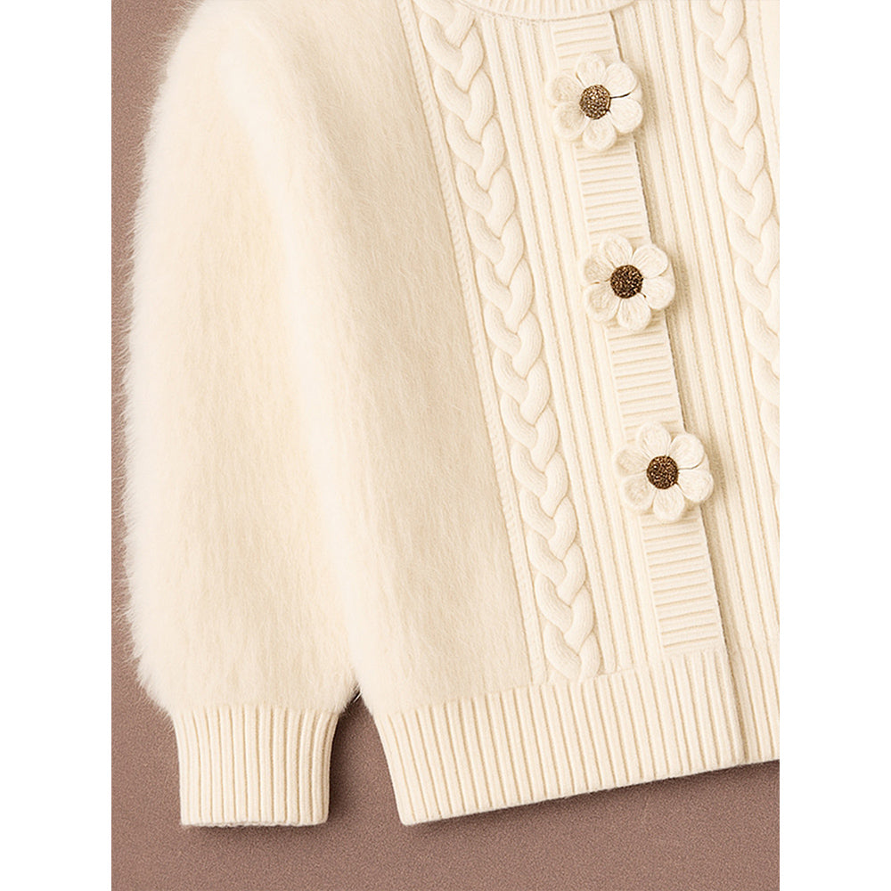 Cream Furry 3 flower Kintted Cardigan, sweatshirt for kids