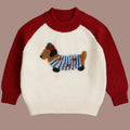 Cream & Red Dachshund Knitted Winter Cardigan, Christmas Sweater for Kids