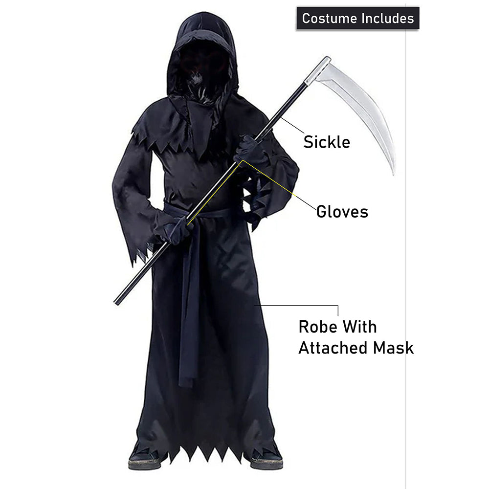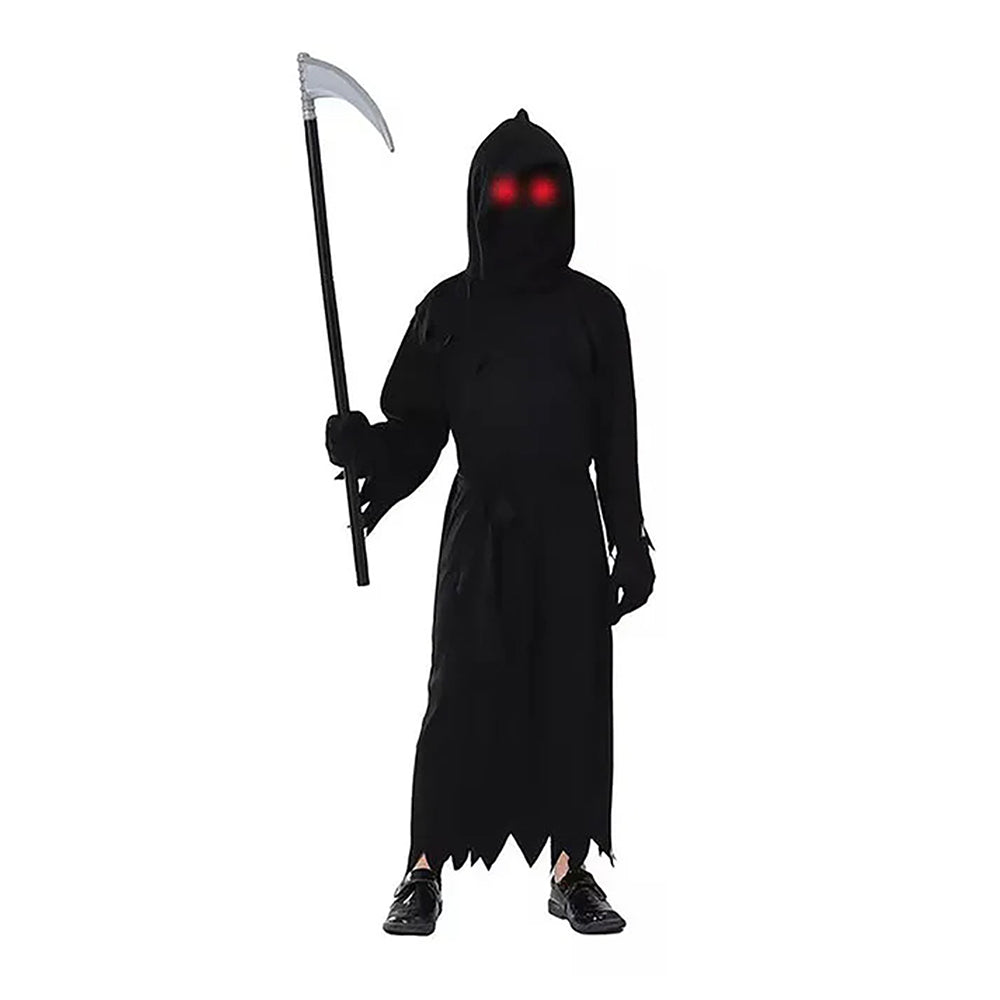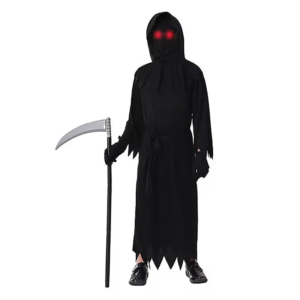 4. Accessories: This costume comes along with a sickle, a red light up glasses, hood and gloves to complete the entire look.Easy to wear for anyone. The accessories can be all worn together or worn separately too.