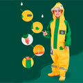 Dinosaur Friends themed Yellow Full Jumpsuit Style Raincoat for Toddlers and Kids