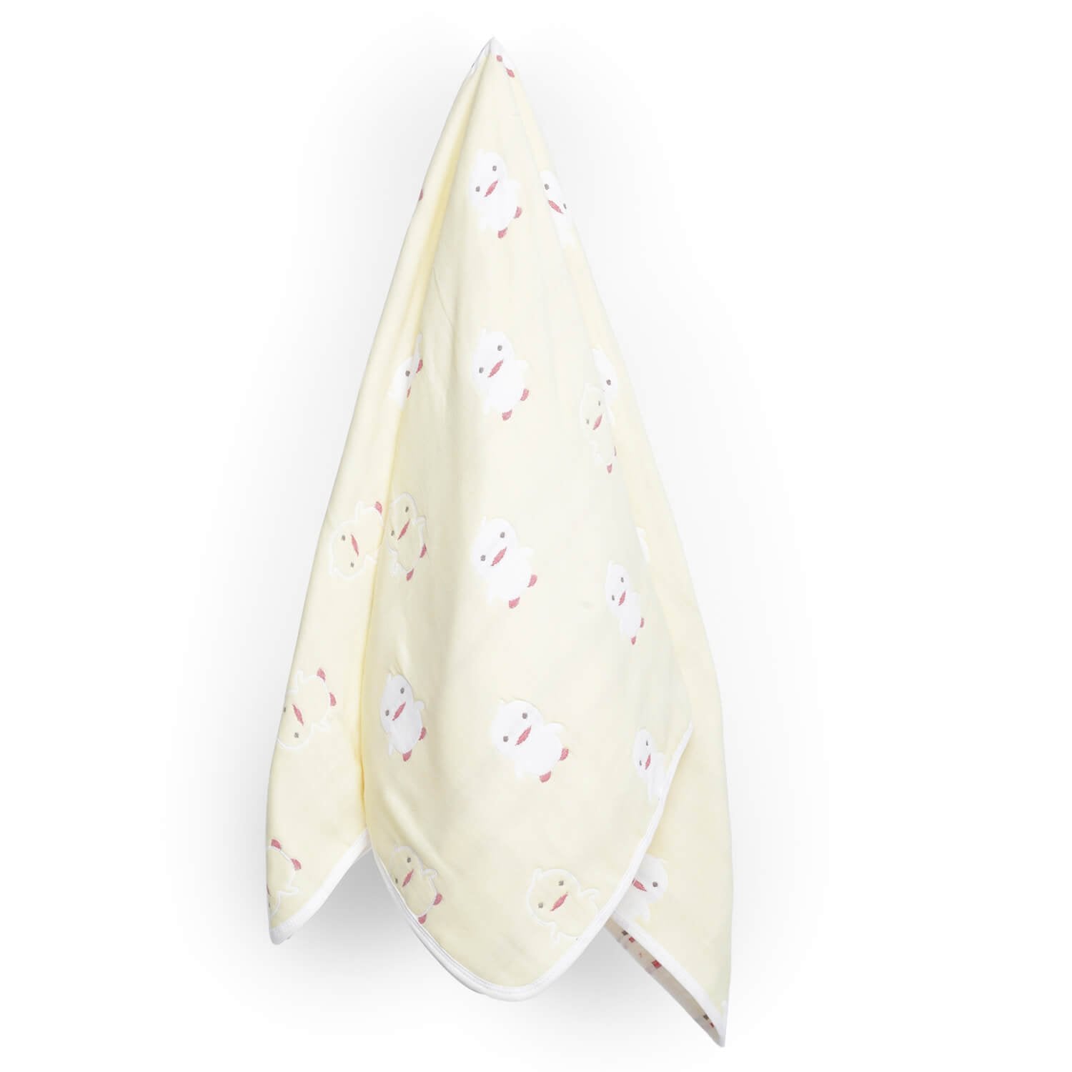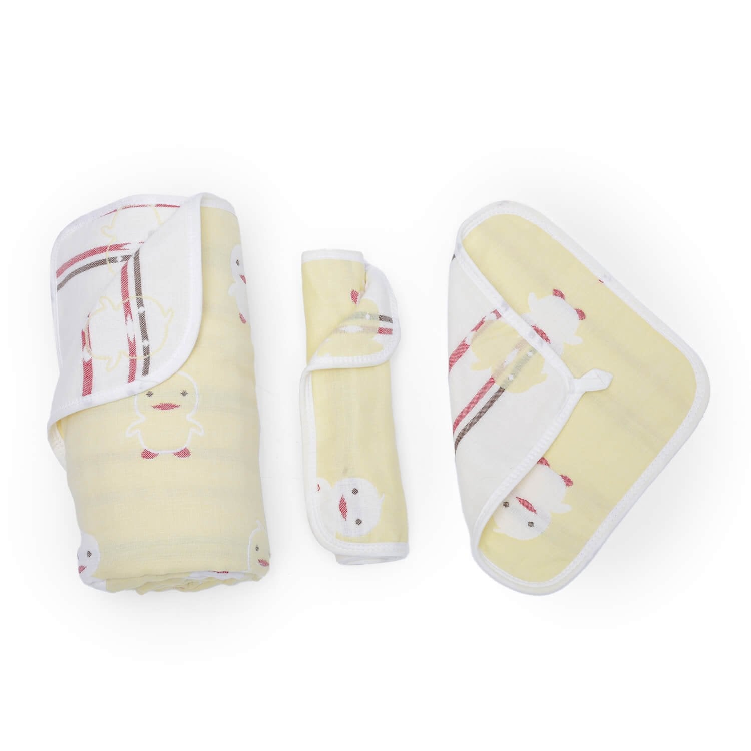 طقم بطانية موسلين عضوي بتصميم بطة، مريلة ومنديل متطابقين