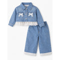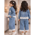 Frills & Bows Denim Jacket with Pants Co-ord set for Girls