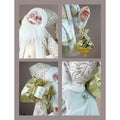 2. Detailing: Designed with gold embroidery and soft fur detailing with a touch of sparkle, this Santa brings classic festive charm. He holds a gold ornament in one hand and a shimmering sack of gifts and foliage in the other, symbolizing abundance and cheer.