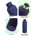 1. Design: Minimalist on the Outside, powerful on the inside. This beautiful Matte finish unique Midnight Blue colored Bottle Flask makes a bold style statement with its finish and modern silhouette.