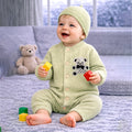 Green Diamond Teddy Full Sleeves Jumpsuit Romper with Cap for Tiny Toddlers