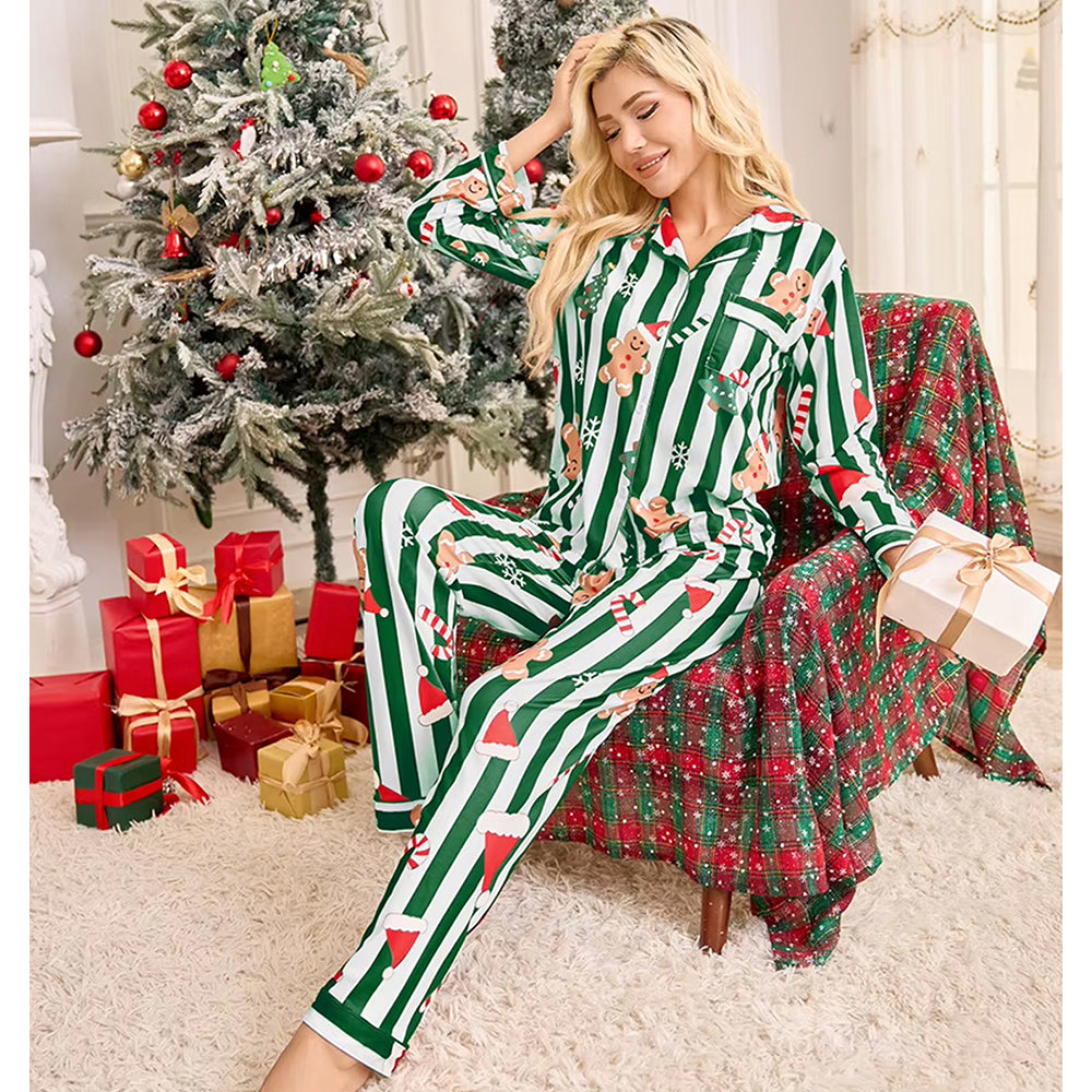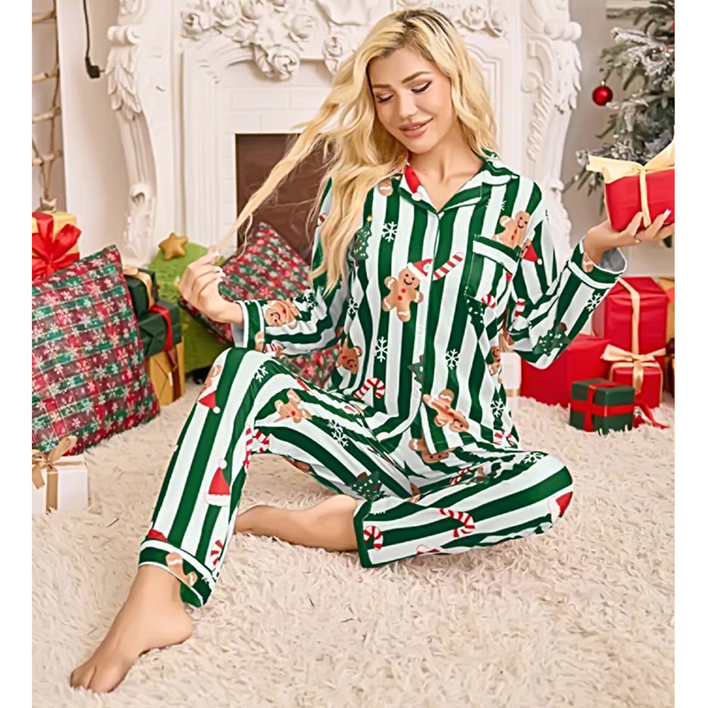 Green Gingerman Christmas Printed Nightsuit Set for Adults, Unisex