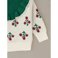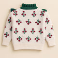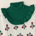 1. Design: This beautifully designed winter sweater is perfect for little ones who love a charming and festive look. It features a white base with cute red and green floral embroidery, with a green ruffled neckline.