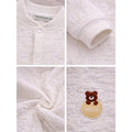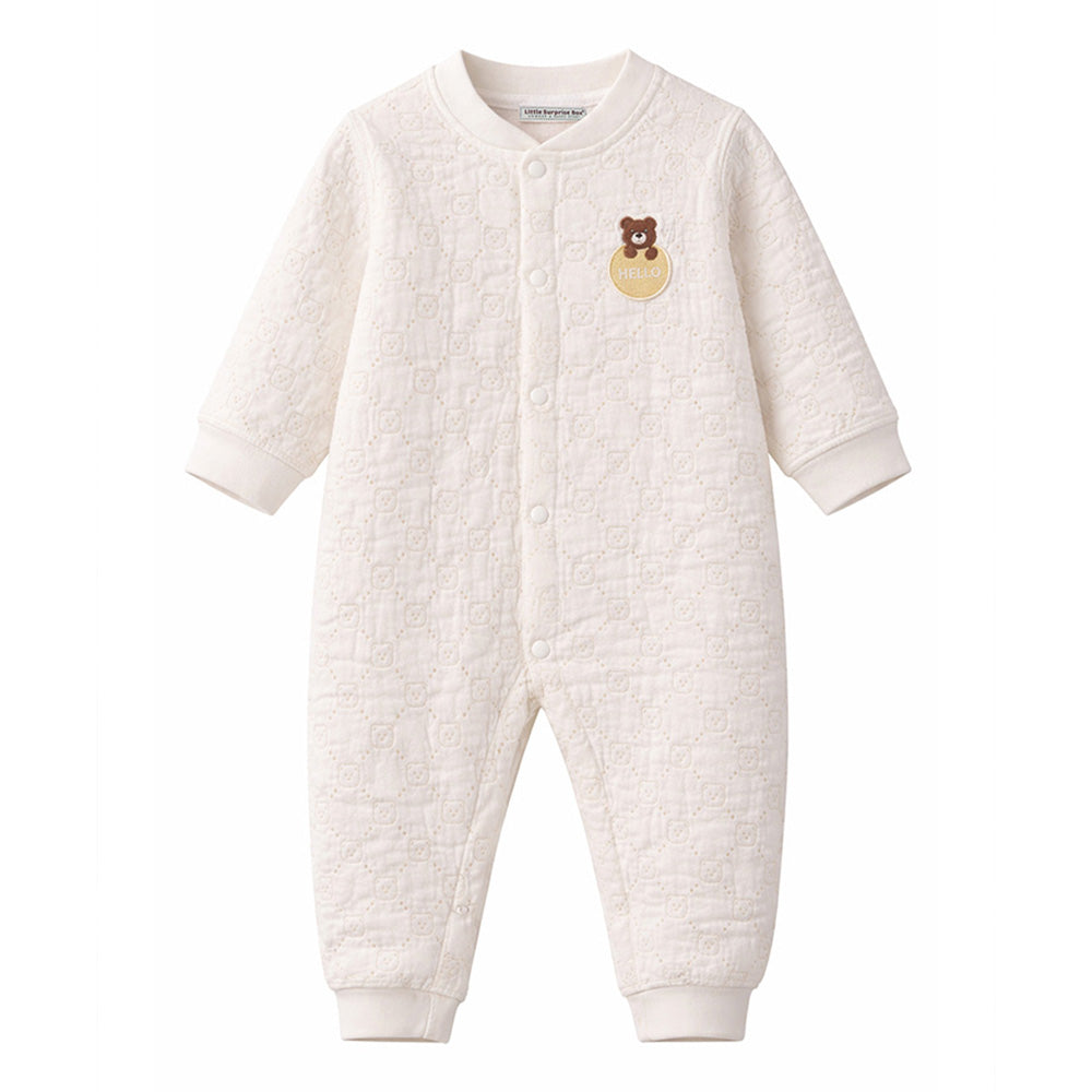 1. Adorable Print: This cream romper features tiny bear faces all over and a sweet embroidered “Hello” bear badge on the chest, giving your little one the cutest, softest, and most cheerful everyday look