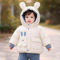 Ivory & Blue Bunny-Themed Quilted Hooded Winter Jacket for Kids