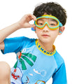 Blue Yellow two border Anti Fog UV Protection Leakproof Design Swim Goggles for Kids,4yrs - 10yrs
