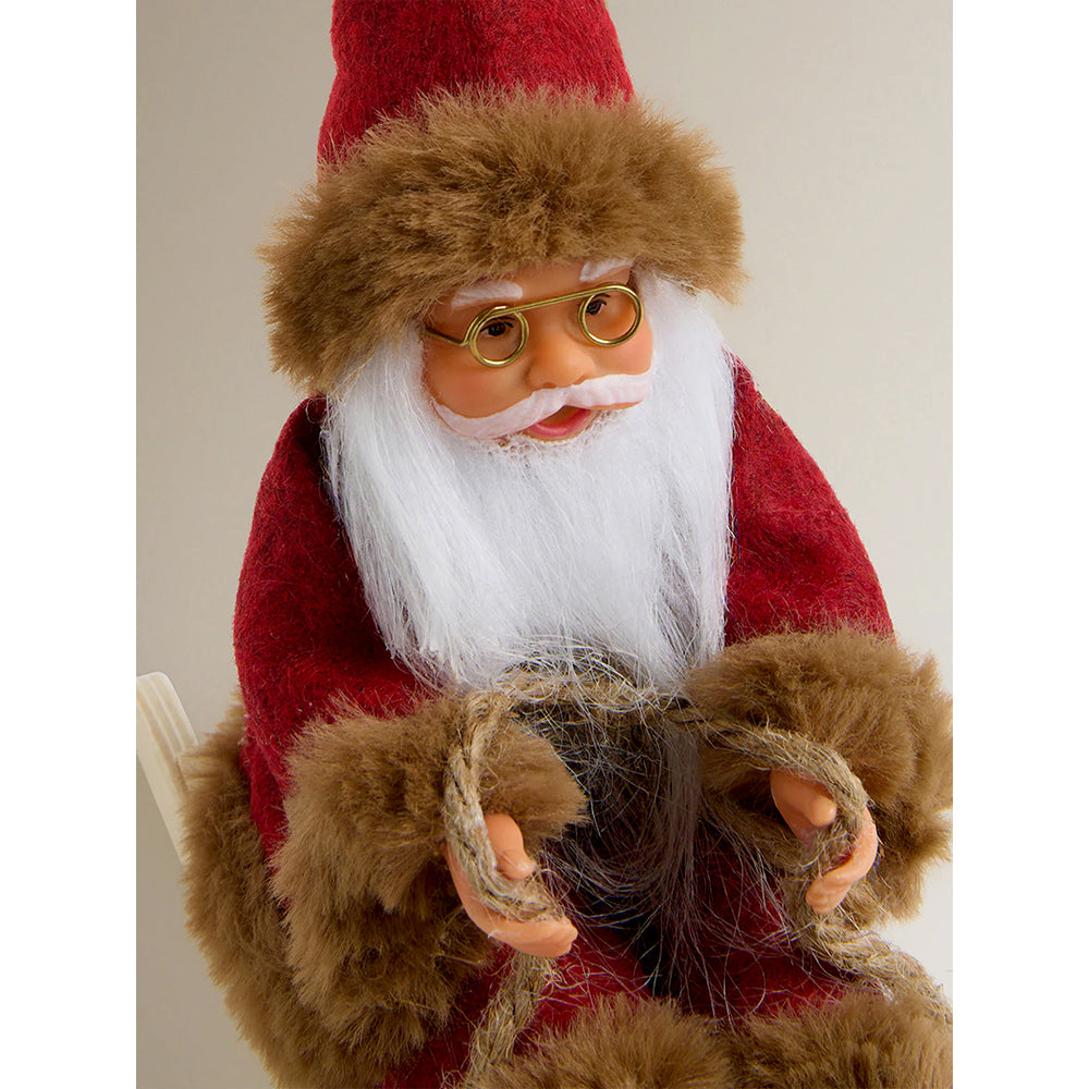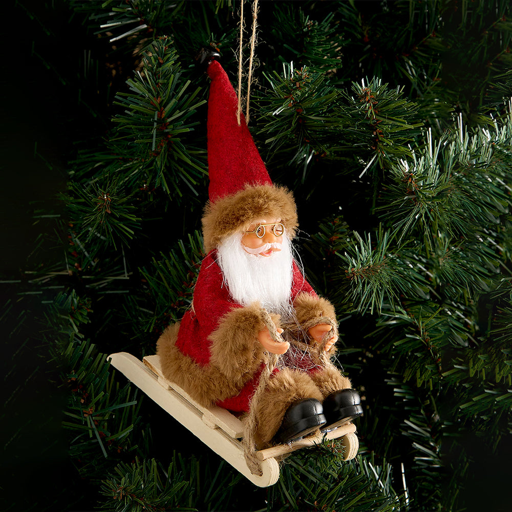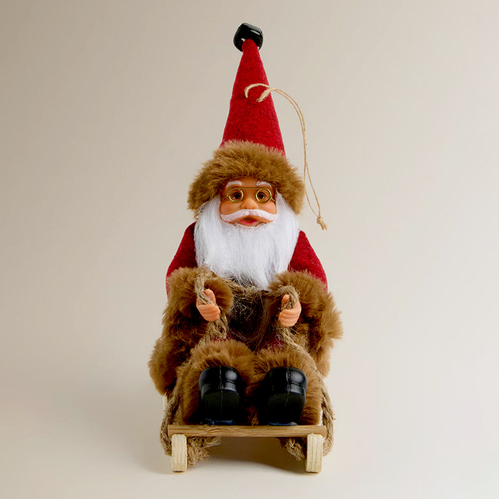 Red Brown Sitting Sledge Santa - Christmas Table Décor & Ornament